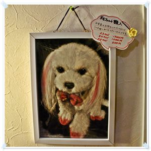 ![]() | 静岡朝日テレビの 牧野アナウンサーとともに 雑貨や羊毛フェルト絵画を 紹介いたしました。 ←こちらが看板犬「ココ」の フェルト絵画です。 お陰様で現在多くのご注文を頂いております。 |